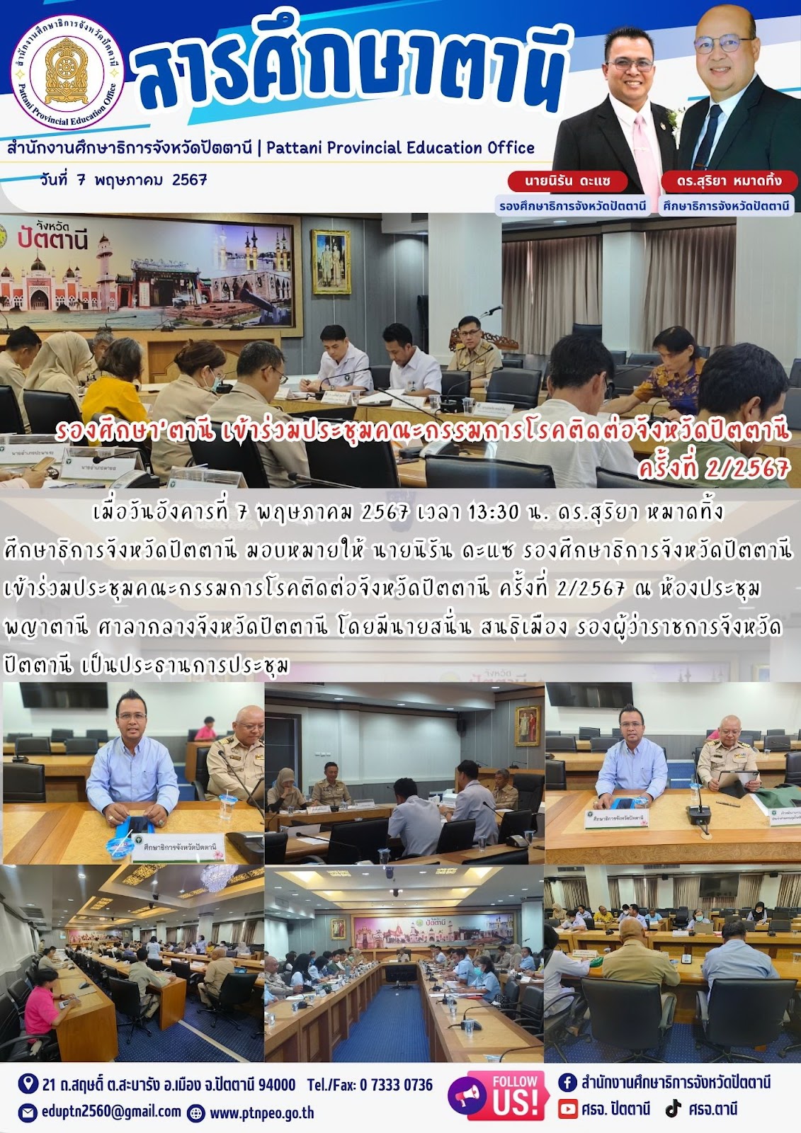 รองศึกษาตานี เข้าร่วมประชุมคณะกรรมการโรคติดต่อจังหวัดปัตตานีครั้งที่ 2/2567 กิจกรรมผู้บริหาร 07 พ.ค. 2024 268 share tweet share