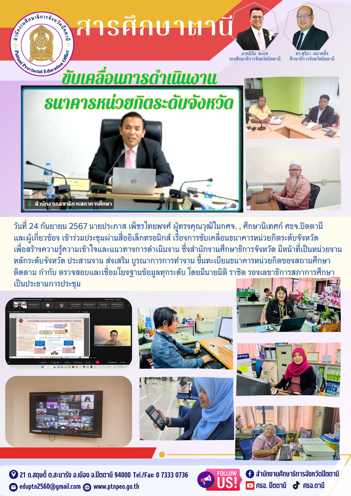 ขับเคลื่อนการดำเนินงานธนาคารหน่วยกิตระดับจังหวัด ข่าวกิจกรรมกลุ่มงาน 24 ก.ย. 2567 572 share tweet share tags: กลุ่มนิเทศ ติดตาม และประเมินผล เรื่องที่เกี่ยวข้อง ข่าวประชาสัมพันธ์ ข่าวประชาสัมพันธ์ โครงการสอบเทียบวัดความรู้การศึกษาขั้นพื้นฐาน ครั้งที่ 1 ประจำปีงบประมาณ พ.ศ. 2569 ข่าวกิจกรรมกลุ่มงาน คัดเลือกนักเรียนเพื่อรับรางวัลระราชทาน ข่าวกิจกรรมกลุ่มงาน โครงการสร้างและส่งเสริมความเป็นผลเมืองดีตามรอยพระยุคลบาทด้านการศึกษาสู่การปฏิบัติ ข่าวกิจกรรมกลุ่มงาน PLC กลุ่มนิเทศ ติดตามและประเมินผล ข่าวกิจกรรมกลุ่มงาน มอบทุนการศึกษา และเกียรติบัตรการประกวดภาพวาดภายใต้แนวคิด “วีรบุรุษ มุสตากีม ทหารผู้เสียสละ เพื่อพิทักษ์ แผ่นดินไทย ณ ชายแดนไทย-กัมพูชา” ข่าวกิจกรรมกลุ่มงาน รับมอบทุนการศึกษา ณ ศูนย์บับเคลื่อนการศึกษาในจังหวัดชายแดนภาคใต้