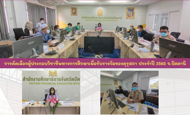 เมื่อวันพุธที่ 10 สิงหาคม 2565 เวลา 09.30 น. นายนิพันธ์ บุญหลวง ผู้ว่าราชการจังหวัดปัตตานี มอบหมายให้นายศักดิ์จิต มาศจิตต์ ศึกษาธิการจังหวัดปัตตานี พร้อมด้วย คณะกรรมการดำเนินการคัดเลือกครูผู้สมควรได้รับพระราชทานรางวัลสมเด็จ เจ้าฟ้ามหาจักรี จังหวัดปัตตานี ครั้งที่ 5 ปี 2566 ร่วมประชุมชี้แจงการคัดเลือกครูผู้สมควรได้รับพระราชทานรางวัลสมเด็จเจ้าฟ้ามหาจักรี ครั้งที่ 5 ปี 2566 (ประเทศไทย) ผ่านระบบวีดีทั